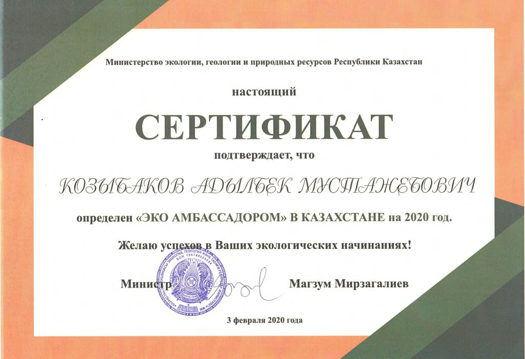 Жақында Нұр-Сұлтан қаласында ҚР Экология, геология жəне табиғи ресурстар министрі Мағзұм Мырзағалиевтың төрағалығымен бірінші республикалық эко-слеті өтті. Шарада маңғыстаулық тәуелсіз эколог Әділбек Қозыбақов Қазақстандағы экология амбассадоры атанды, - деп хабарлайды mangystaumedia.kz сайты.
