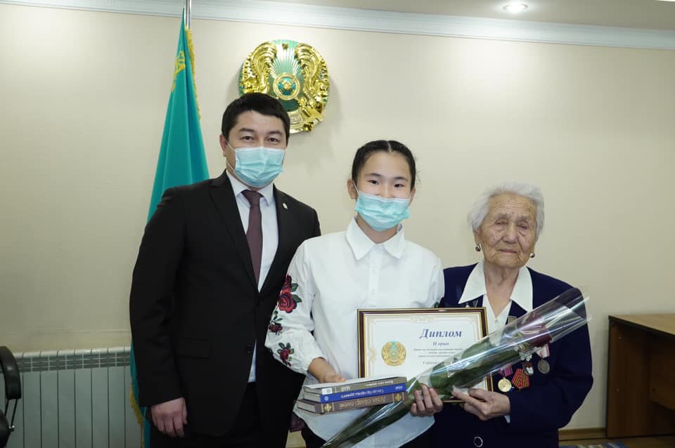 Шараға Нұрдәулет Қилыбай мен 95 жастағы ұстаз Салиха Ыдырысова қатысып, жүлдегерлерге қаржылай сыйлық пен кітап табыстады.