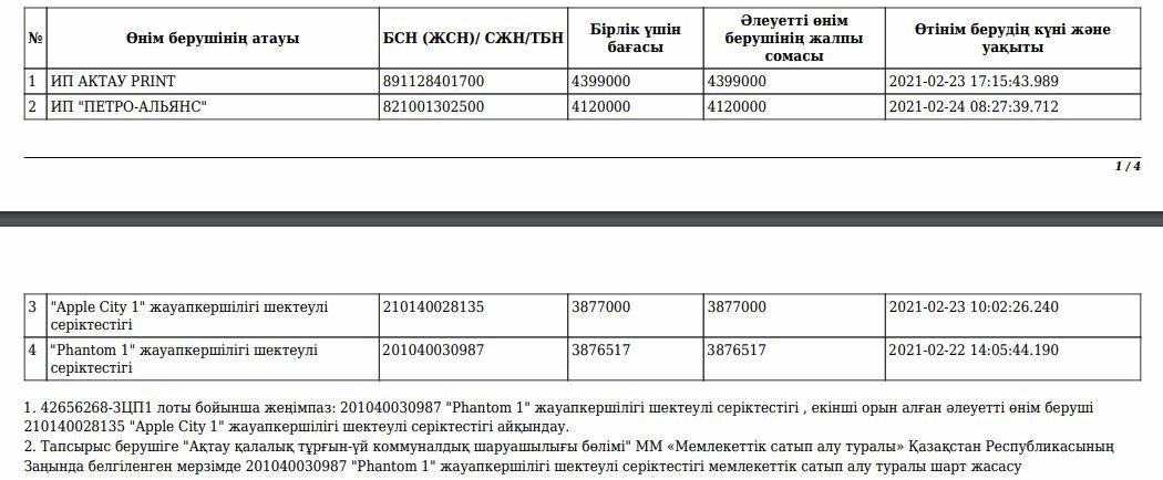 Мемлекеттік сатып алу порталының мәліметтеріне сенсек, ең төменгі баға ұсынған алматылық «Phantom 1» ЖШС жеңімпаз атанды. Яғни, ол мерекеге орай қаланы безендіруді 3 876 517 теңгеге бағалапты. Ал «Apple City 1» ЖШС 3 877 000 теңге ұсынып, екінші орын алған.