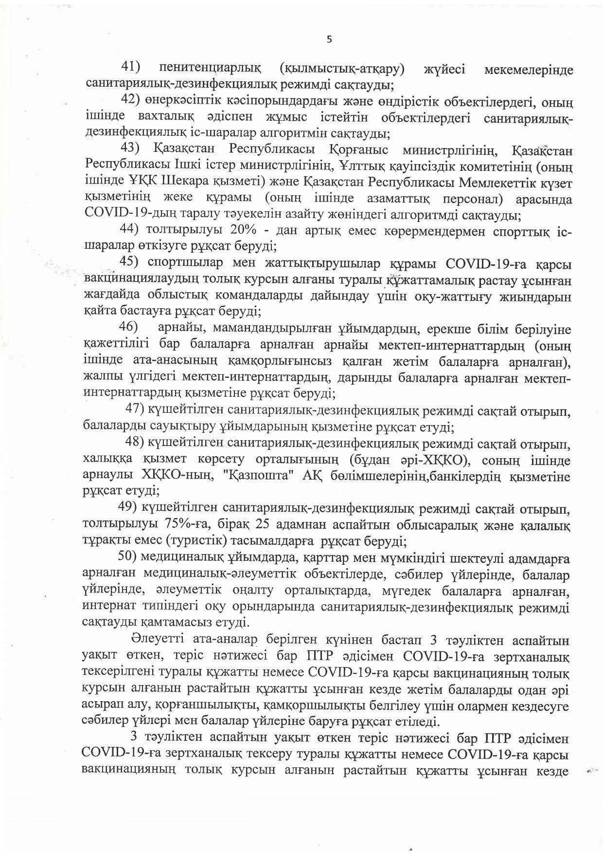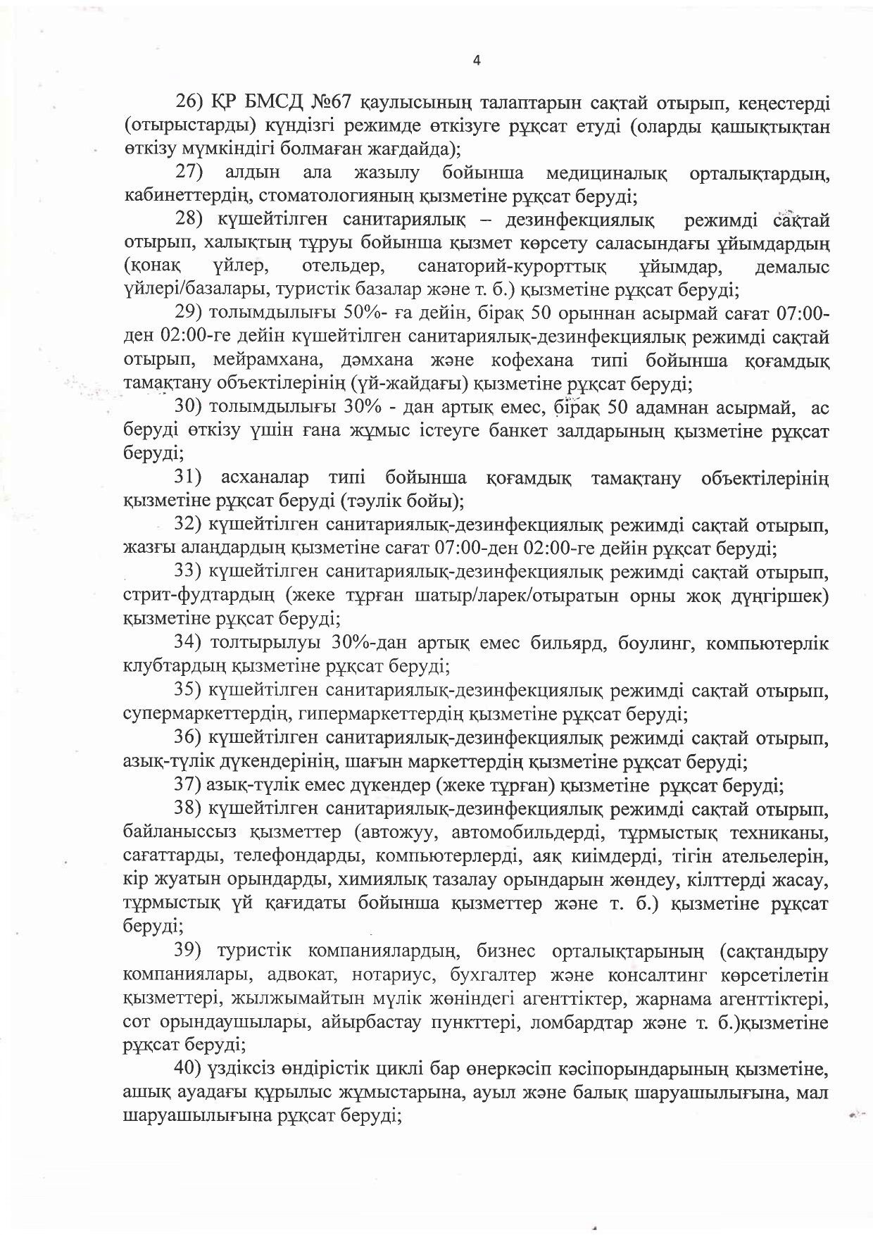 4) балалардың ойын-сауық орталықтары (ойын алаңдары, ашық және жабық үй-жайлардағы аттракциондар) толтырылуы 30% - дан артық емес, бірақ 50 адамнан аспайтын қызметіне;
