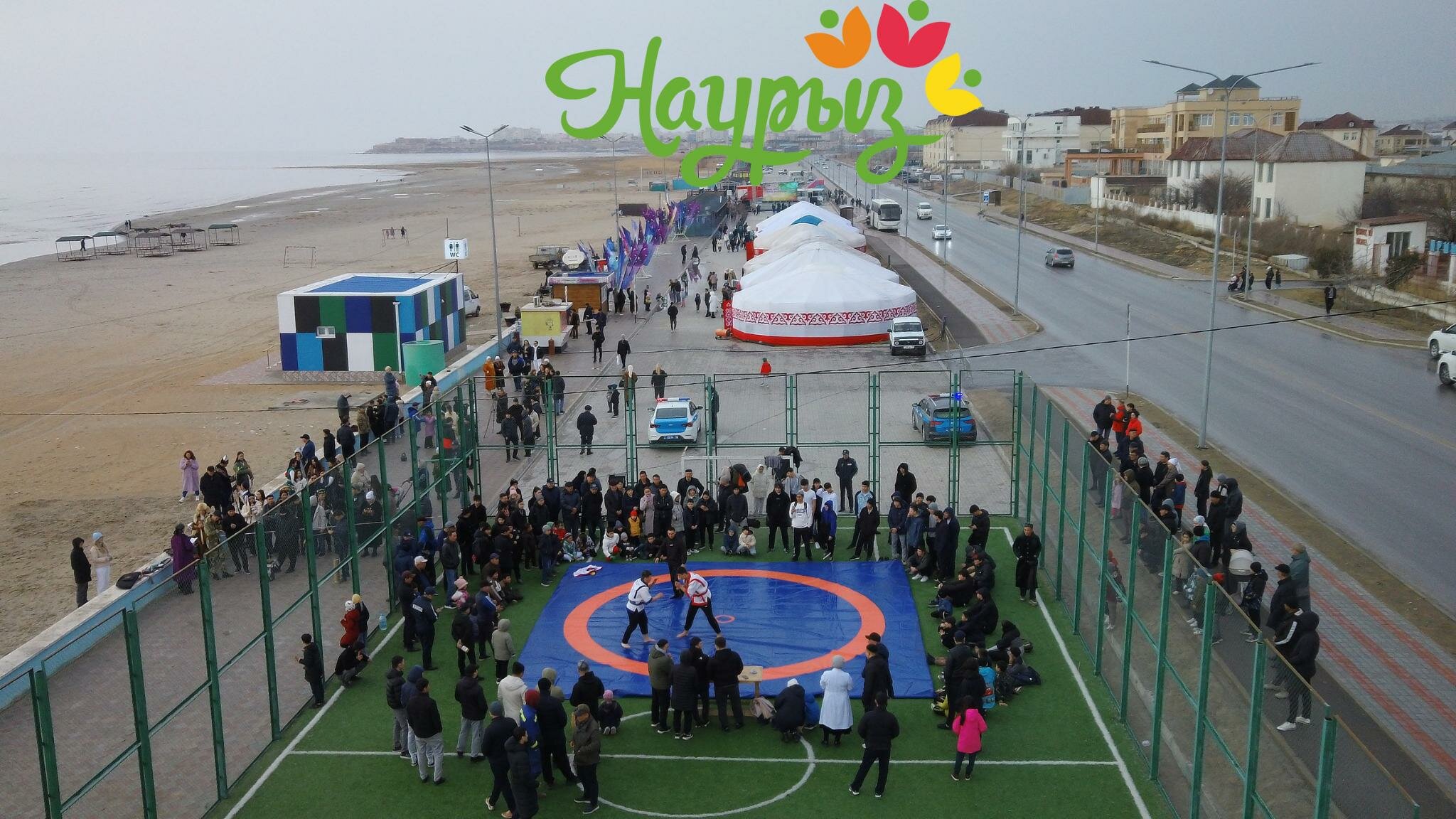 Теңіз жағасында жеті киіз үй тігіліп, келушілерге ақ дастархан жайылды. Наурыз тойында болған тұрғындар қазақ күресі, гір көтеру, ләңгі тебу, қол күресі, қой көтеруге қатысты. Сондай-ақ, садақ ату жарысы да ұйымдастырылды. Сайыста алты топ бақ сынады. Мерекелік шараға Ақтау қаласының әкімі Ұлықбек Тналиев қатысып, тұрғындарды наурыз мерекесімен құттықтады.