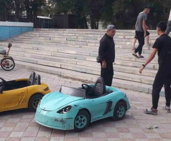 - Эти детские автомобили, накрытые белой мешковиной днем незаконно находятся в сквере рядом с торговым центром Астана. Другое дело вечером, когда спадает жара. Их владельцы выводят из укрытия, переходят через дорогу на набережную и занимаются незаконным прокатом, - написал житель Актау.