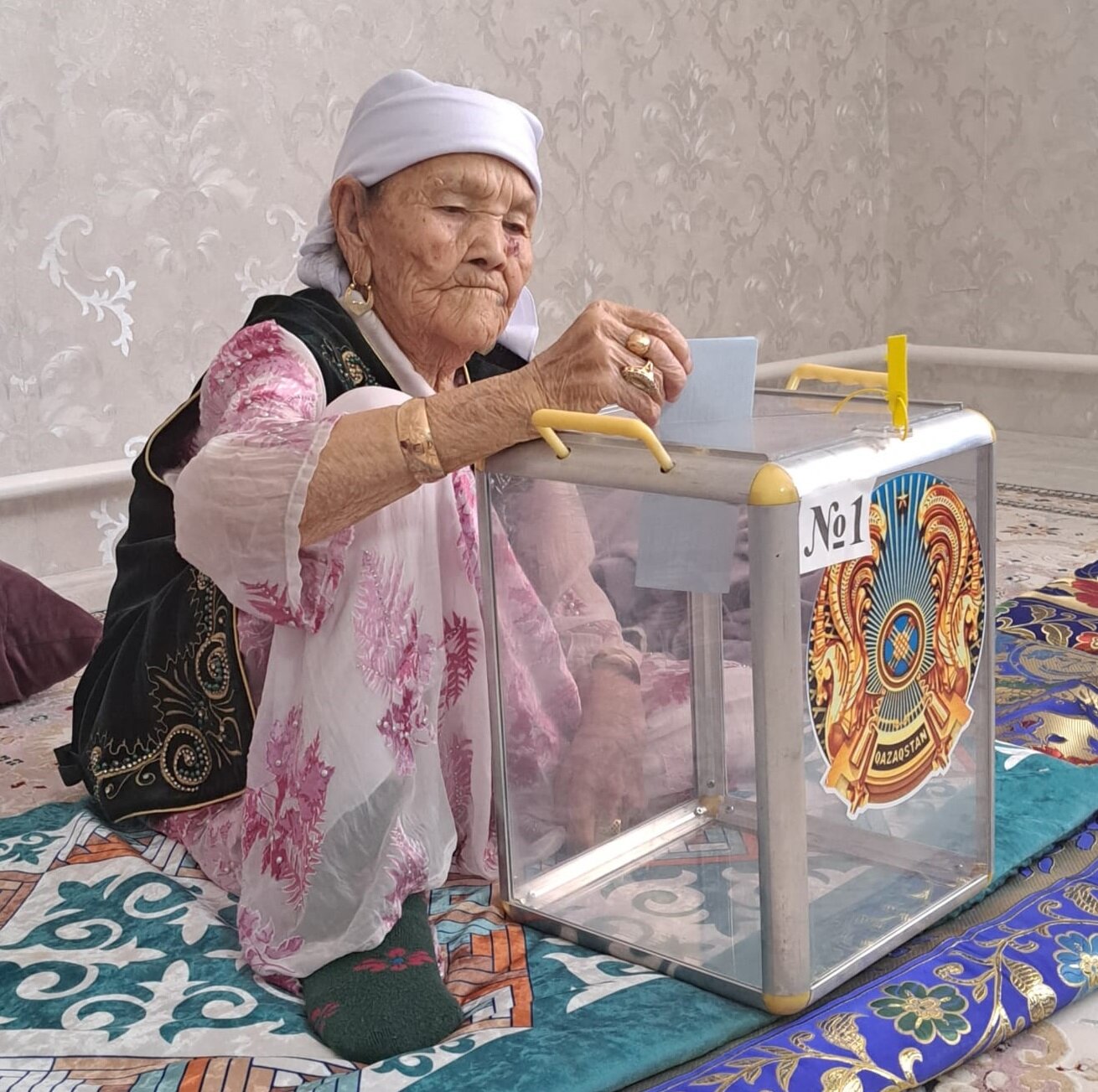 Жительница небольшого села Каракиянского района, столетняя Ханым Суюндикова, проголосовала за будущее поколений на 148 избирательном участке. Ровесница века благословила молодежь.